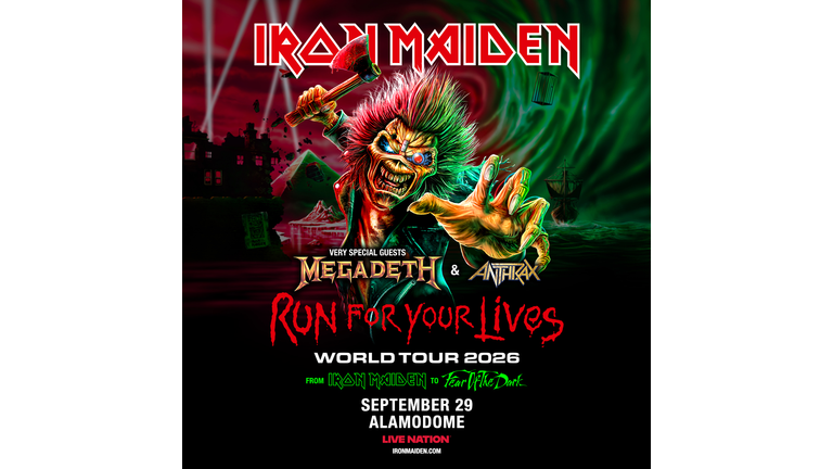 C101 Welcomes to the @alamodomesa Sept. 29, 2026.. @ironmaiden with special guests @megadeth and @anthrax ! It's the Run For Your Lives Tour! This is their only Texas date! Tickets go on sale Oct.31st at 10am online at www.livenation.com! Register to win tickets at c101.com!