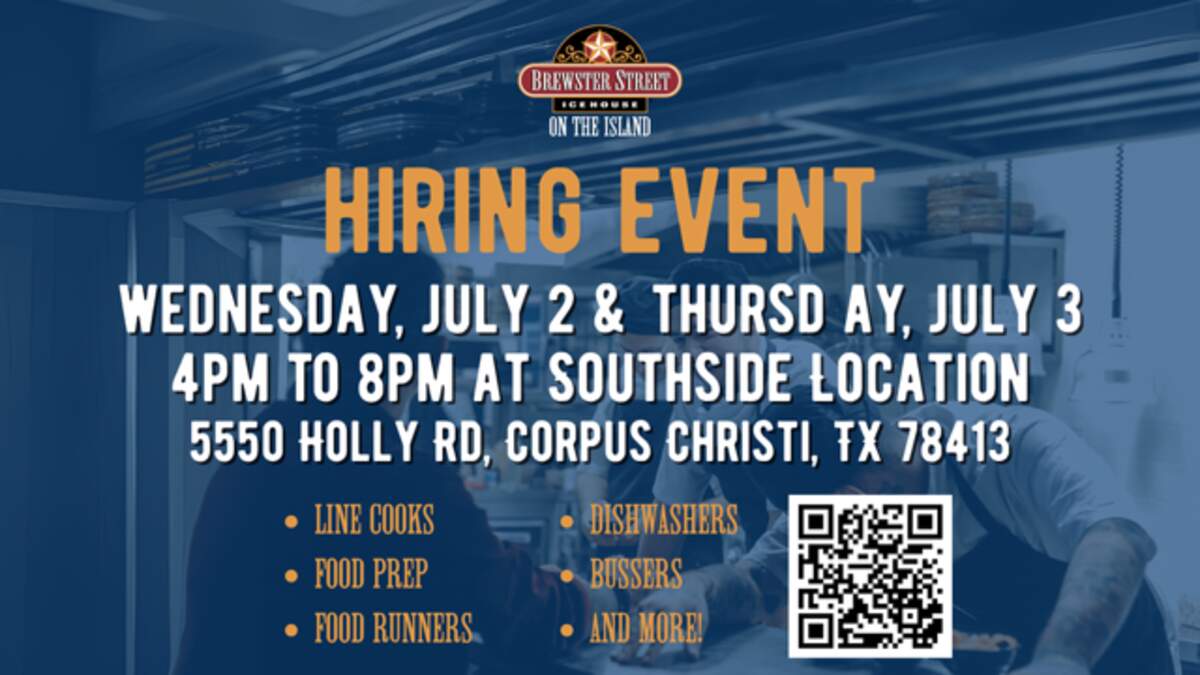 To support this growth, we’re hosting a two-day hiring fair this Wednesday and Thursday (July 2–3) from 4:00 PM to 8:00 PM at our Southside location: Brewster Street Icehouse – Southside 5550 Holly Rd, Corpus Christi, TX 78413