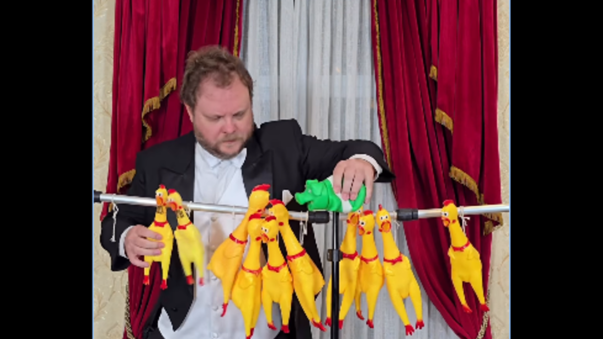 Lord Vinheteiro can play different songs using the different squeaky squawks of rubber chickens and his latest work might be his finest yet. Please enjoy the rubber chicken version of System Of A Down's "Chop Suey"! WAKE UP! And follow him on Instagram, Lord Vinheteiro is a genius!
